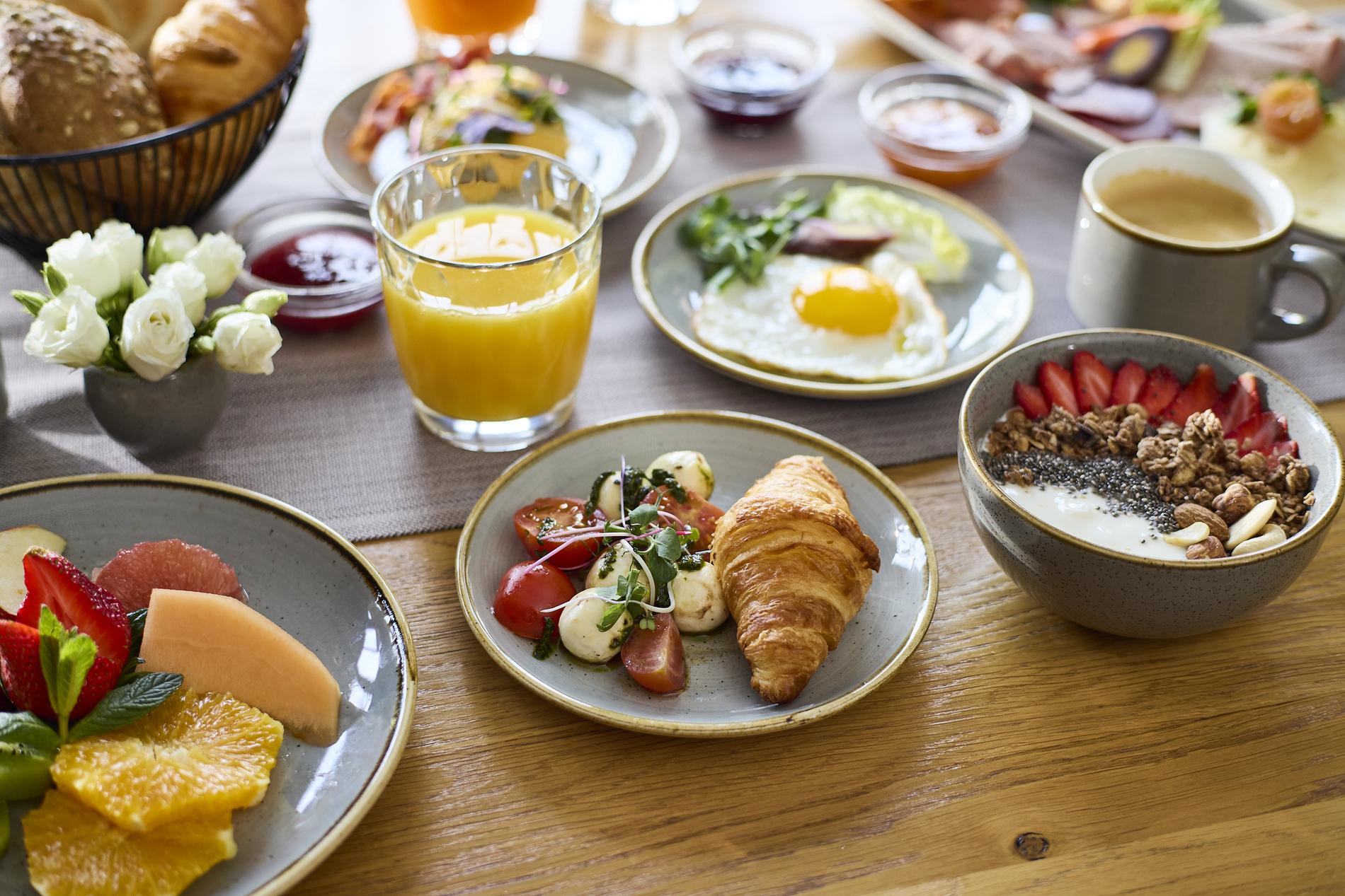 Von Montag bis Freitag zwischen 07:00 Uhr und 10:00 Uhr laden wir Sie herzlich ein, unseren Frühstücksgenuss in entspannter Atmosphäre zu erleben. Frische Backwaren, Kuchen, duftender Kaffee, knackiges Obst und all die kleinen Leckereien, die den Morgen perfekt machen – hier starten Sie wirklich gut in den Tag!